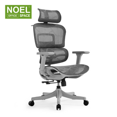 2) Full nylon mesh back & seat + white nylon back frame + height adjustable headrest & cloth hanger