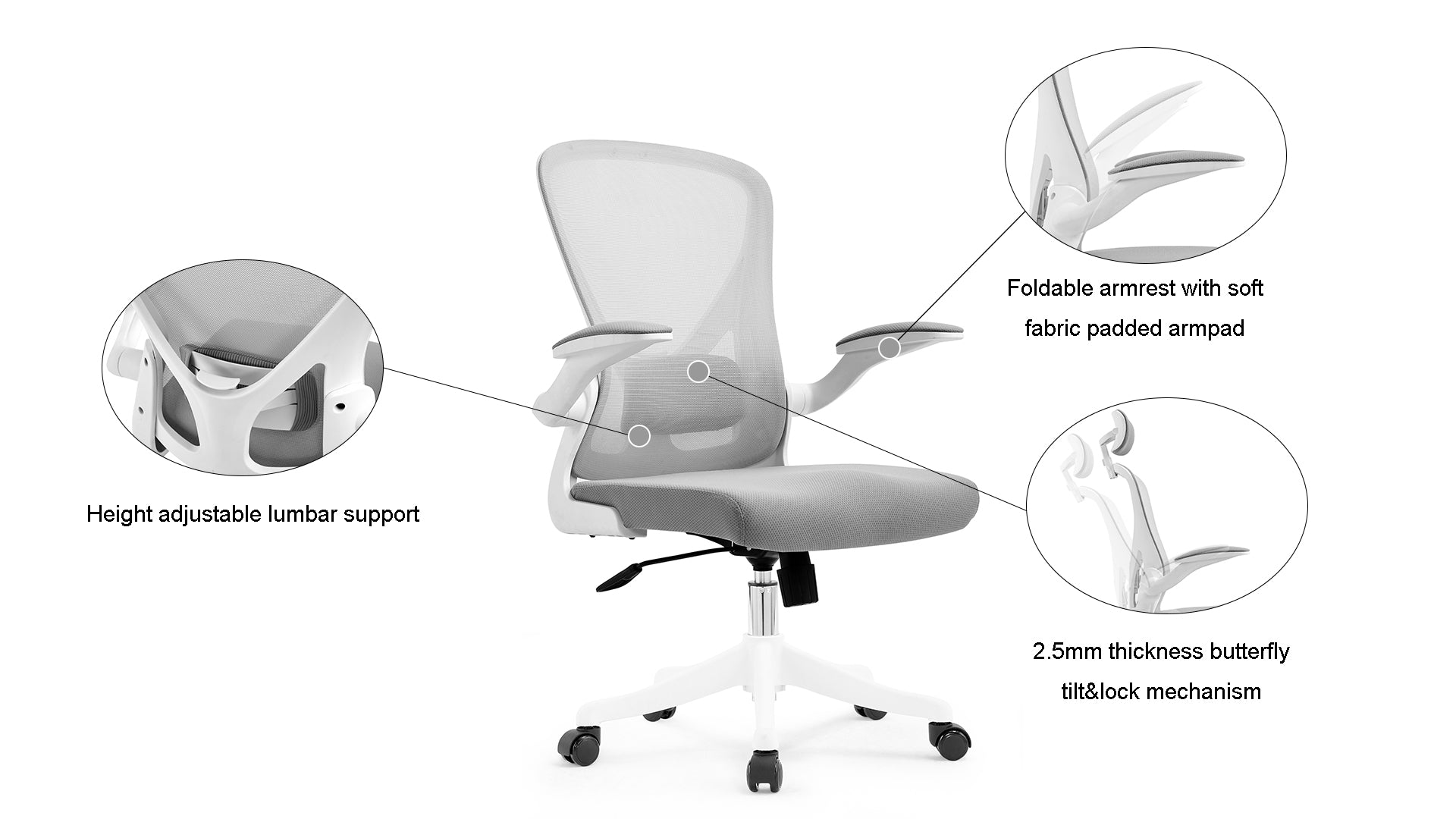 2) Mesh back + white PP with fiber back fraem (Back strength test more than 136kgs) + height adjustable lumbar support