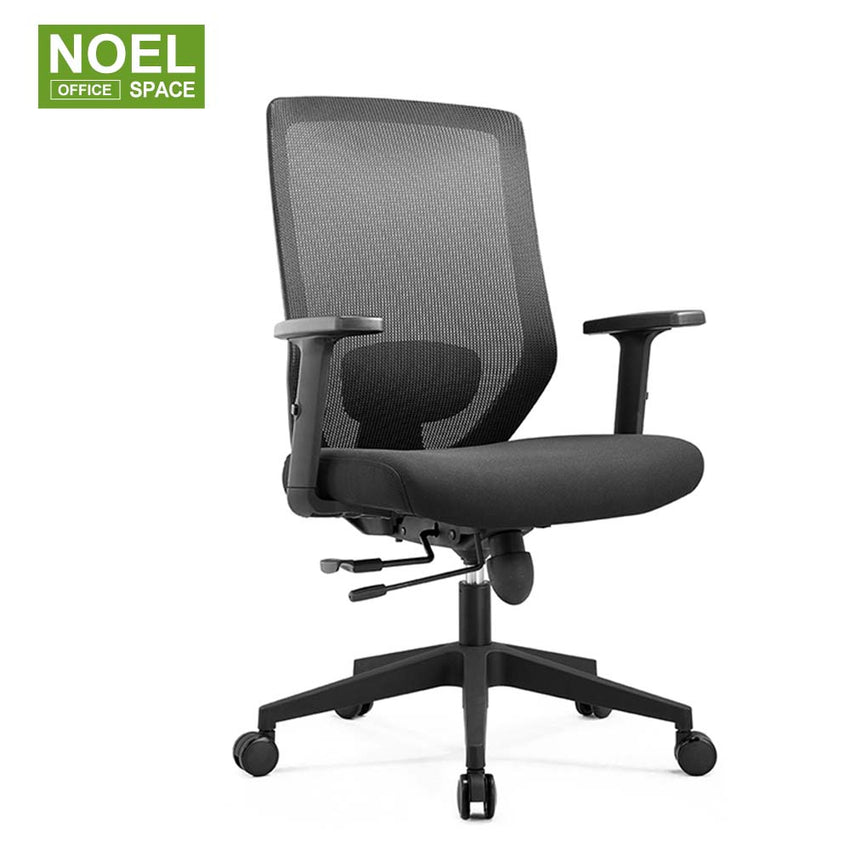 2) Mesh back + height adjustable padded lumbar support (+7CM) & black nylon back frame