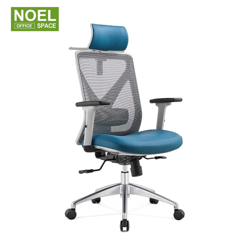 1) High back ergonomic mesh office chair with adj. 2D headrest with PU padded & clother hanger