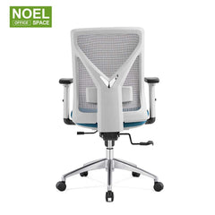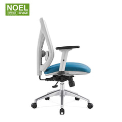 2) Full backrest is height adjustable(6 locks); Nylon mesh back with grey nylon back frame + height adjustable 2D lumbar support in height & depth with foam padded;