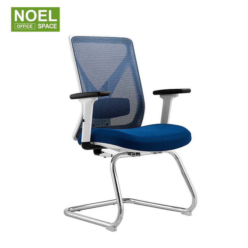 2) Full backrest is height adjustable(6 locks); Nylon mesh back with white nylon back frame + height adjustable 2D lumbar support in height & depth with foam padded;