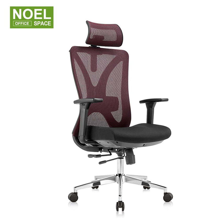 1) High back ergonomic mesh office chair with 2D headrest & cloth hanger