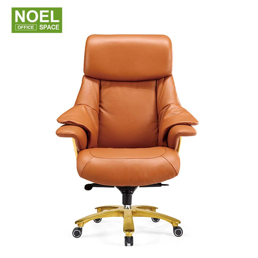 Rabi-H (Golden), Ergonomic leather office chair executive manager stuff work chair with headrest
